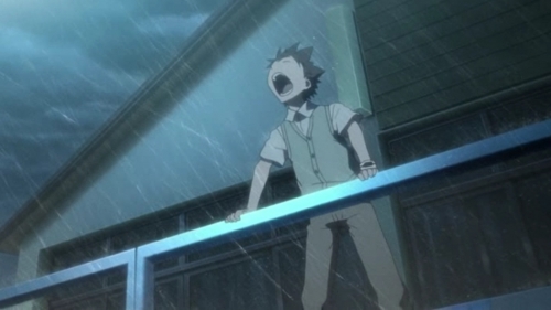 Первая серия, показывают нам очень клевый, техно-развитый город. Показывают элитного школьника, его подругу. Но все «скучно». И показывают, как этот мальчик радуется буре/урагану/дожду/ветру. Как будто бы, засиделся, что забыл что такое ветер. Я тоже люблю ветер, когда продувает, летний ветер, не зимний ледянной, а клевый летний. Обожаю.