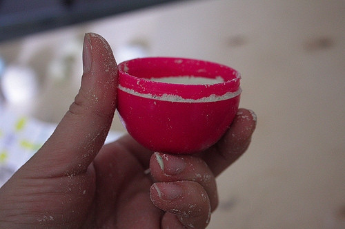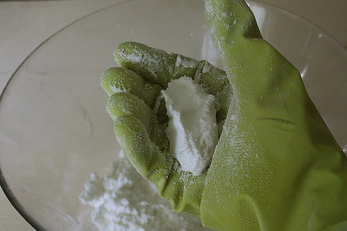 Используйте перчатки дабы не занести лишнюю влагу в нашу смесь. Правда, работать в перчатках бывает невсегда удобно)